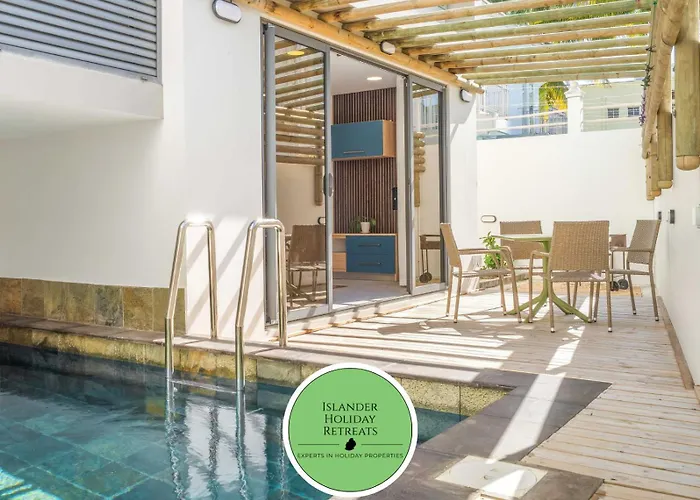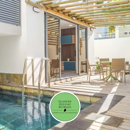 Tijdens een verblijf in Serenity Suites 3 - Appartement 2 Chambres Luxueux Toit-Terrasse Cap Malheureux van 75 m² kunnen gasten zich ontspannen op een terras binnen 2 km van Super U. Er is ook een zwembad voor een nog aangenamer verblijf.